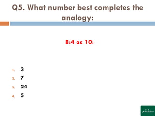 What Number Best Completes The Analogy 8 4 As 10 A 3 B 7 C 24 D 5 The Math Guru